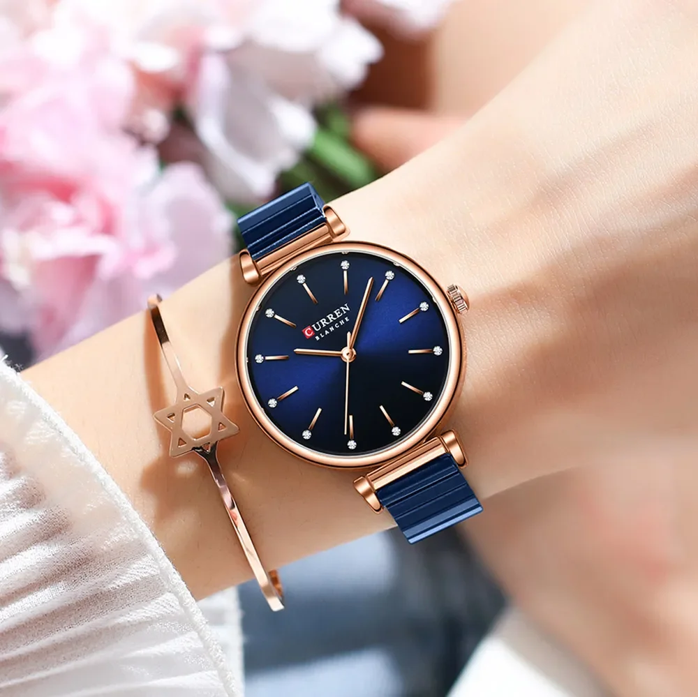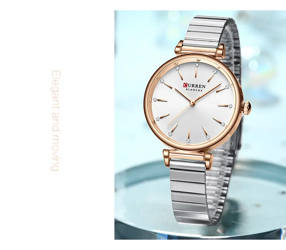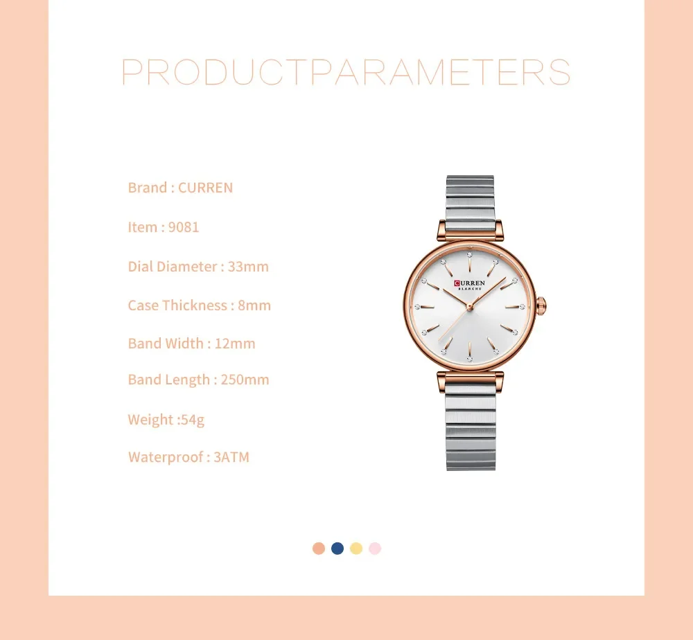 CURREN Women Watch Top Brand Luxury Elegant Female Waterproof Clock Genuine Leather Bracelet Simple Lady Girl Wristwatch 9081